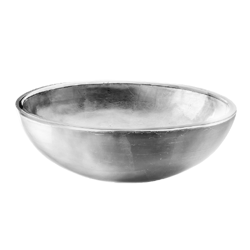 Lavatório de pousar. Resina transparente com folha metálica no interior.